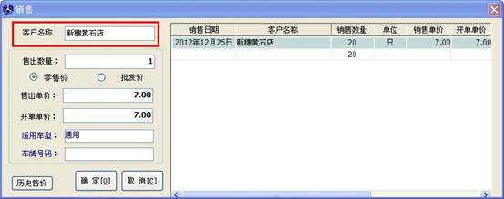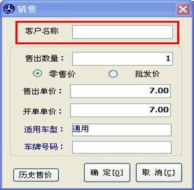 客戶名稱框里輸入內(nèi)容,如果此客戶購買過此配件,那么在窗口的右邊將調(diào)出此客戶的購買記錄及價(jià)格,如下圖