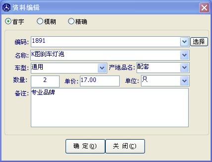 當(dāng)您的配件沒有錄入庫存,卻又要做銷售時(shí),您可以使用急件開單功能,點(diǎn)擊此窗口中的 “急件開單” 按鈕,出現(xiàn)下圖中的窗口,輸入要出售的配件資料,點(diǎn)確定,如果此單還要?jiǎng)e的配件要銷售,可以繼續(xù)添加,否則點(diǎn)“返回”按鈕對(duì)此次急件的配件進(jìn)行進(jìn)貨結(jié)算操作。最后點(diǎn)上面的結(jié)算按鈕完成急件開單操作。