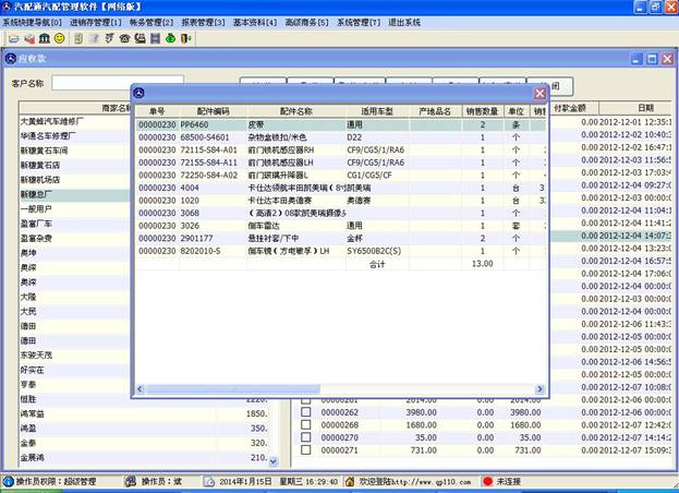 窗口分為上下兩部分,上部分顯示的是開出的單子及客戶一些信息,下部分對(duì)應(yīng)的是此單子里包含的配件信息。