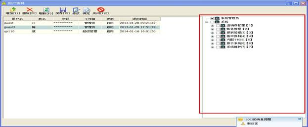 操作員管理此窗操作相對(duì)簡單,都是些添加,刪除,修改的操作,這里有一點(diǎn)要注意,當(dāng)您添加了一個(gè)新操作員時(shí)記得將右邊的權(quán)限勾上,要不然新的操作員登錄上去后什么權(quán)限都沒有,什么東西都操作不了。