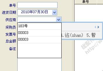 6、 配件太多記不住配件編號怎么辦?輸入編號、配件名稱等等會(huì)很麻煩,那么多編號肯定是記不住的,先填好供應(yīng)商、采購員、發(fā)票號等等,之后就是開新單會(huì)彈出: