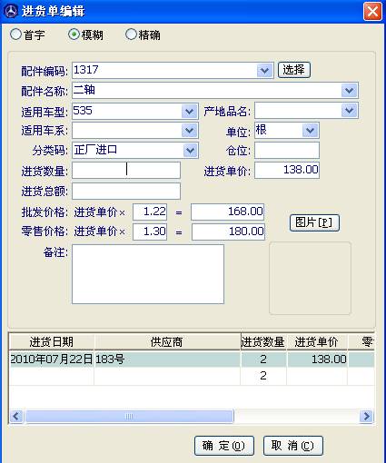 同樣查詢進(jìn)貨歷史的方法在進(jìn)貨入庫時(shí)查詢,任意輸入好供應(yīng)商等等,開一張新單,輸入您要查詢的配件名稱或者配件編碼號,